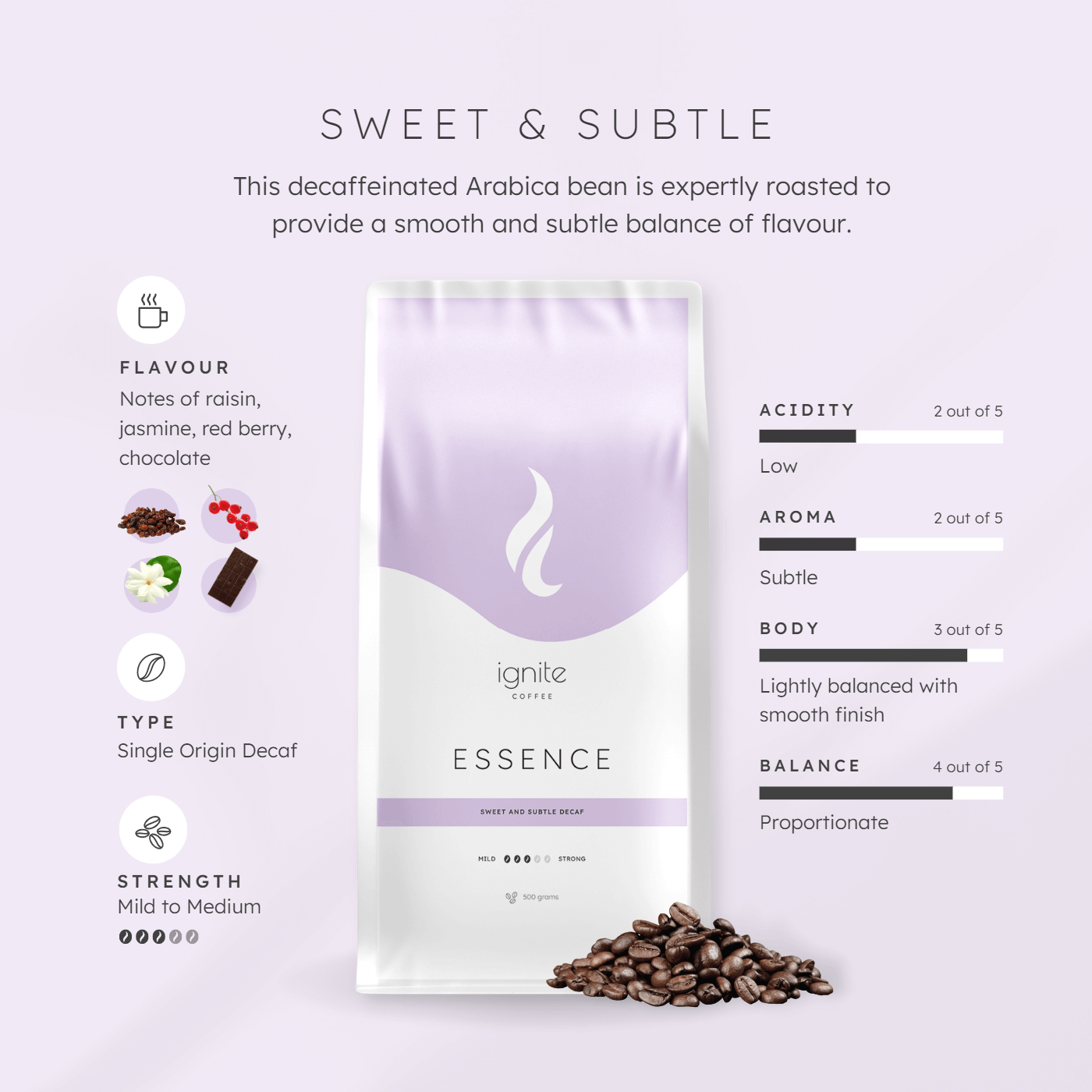 Choose from whole beans or ground coffee to relish this exquisite decaf brew crafted for discerning coffee enthusiasts seeking exceptional taste and quality.