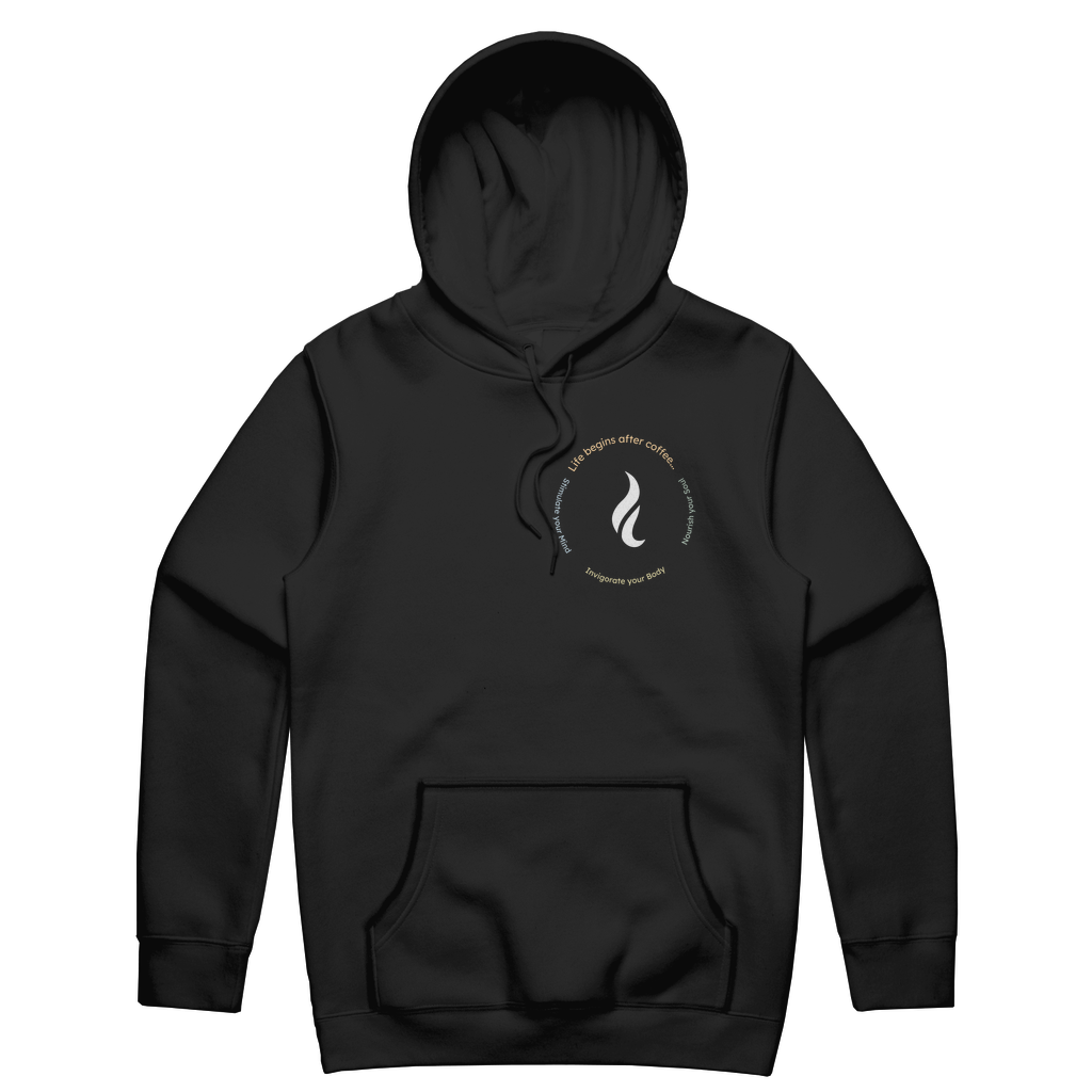 Pullover hood, raglan sleeves, kangaroo pocket, lined hood, tonal drawcord